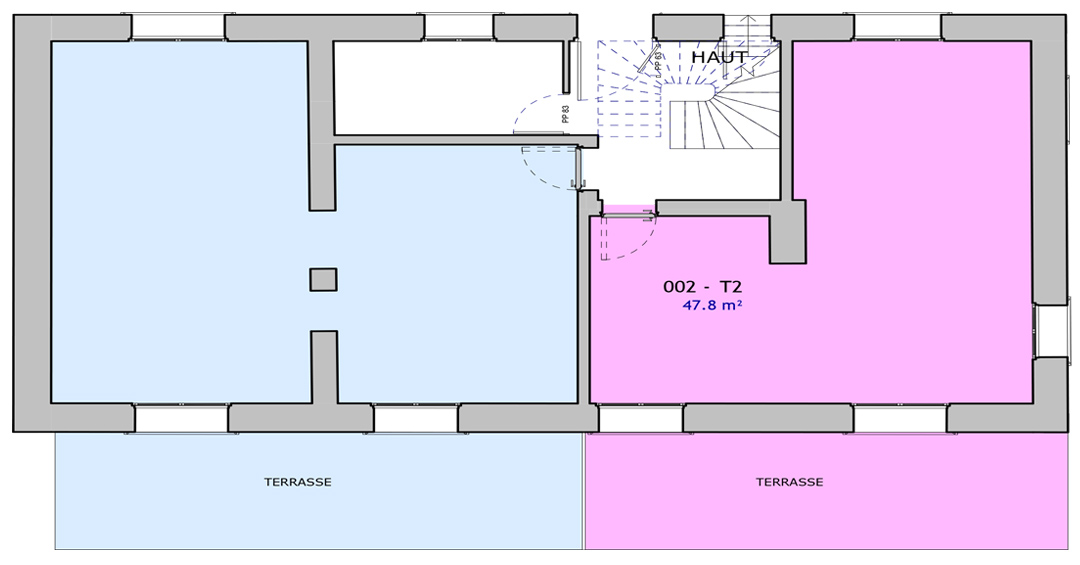 RDC - Plateau T2 - 47.8 m² + Terrasse
